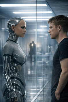 If Her is the soft, romantic side of AI intimacy, Ex Machina is the sharp, dangerous one. Both films explore consciousness, emotional attachment, the ethics of creation, and the loneliness of being human — but Ex Machina adds a layer of psychological tension that makes it feel like Her’s darker twin.