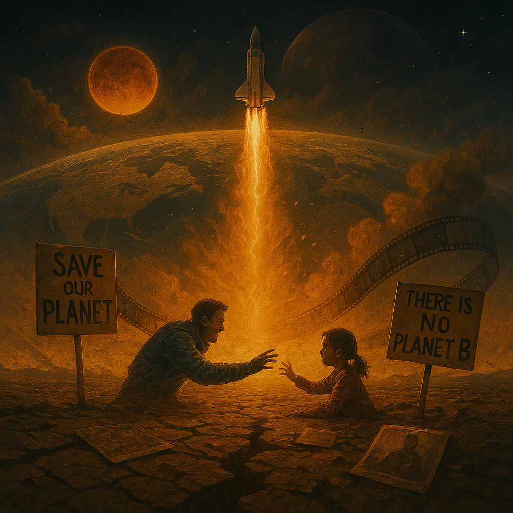 Like Interstellar, the film is rooted in the idea of leaving a dying Earth behind — but it narrows the focus to two people forced to build a life in a future they never chose, asking whether love can grow in the shadow of an impossible decision.
